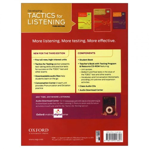 کتاب “Developing Tactics for Listening” با حفظ ساختار جذاب سطح اول، محتوایی عمیقتر، سرعت گفتاری طبیعیتر و موضوعاتی چالشبرانگیزتر را برای زبانآموزان در سطح B1 ارائه میدهد.